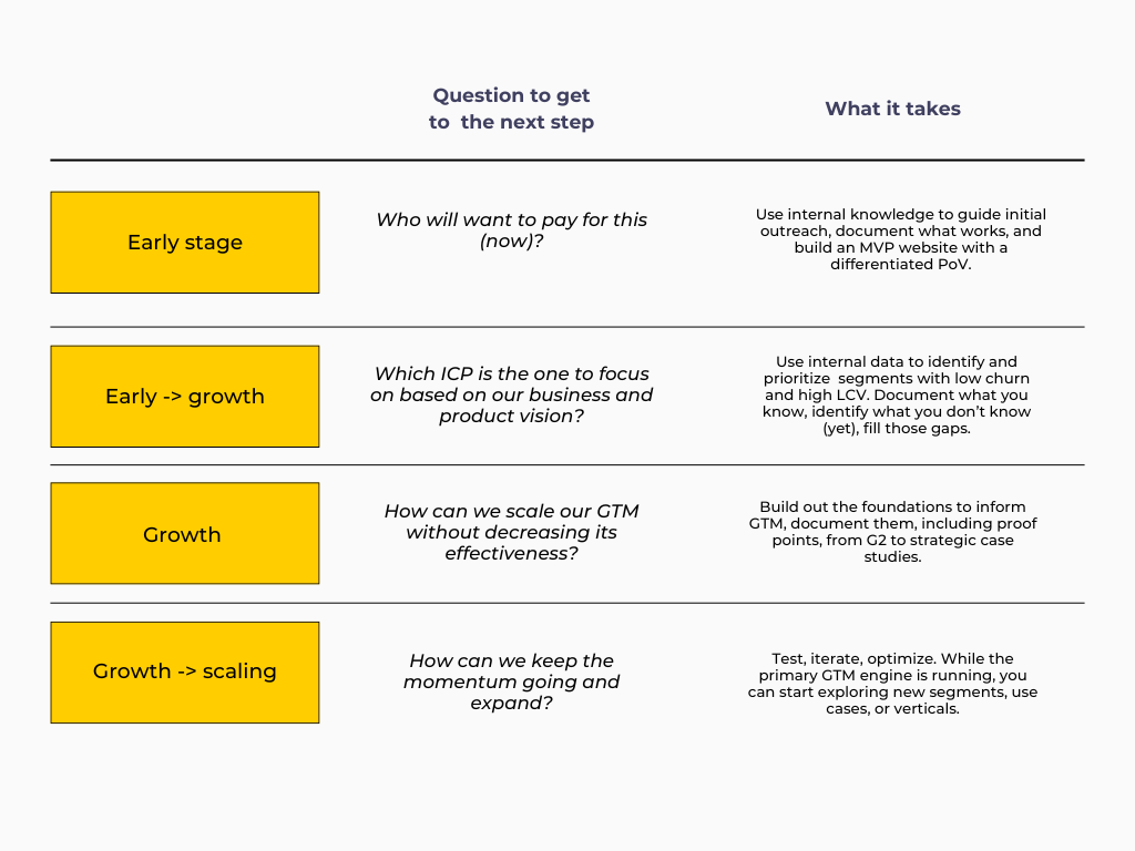 Which means that there’s no internal alignment on or shared understanding of: positioning, messaging, differentiators, tone of voice, customer journey, objections / hesitations / motivations / pain points / JTBD, ICPs’ buying process, and types of proof they want to see and find persuasive.