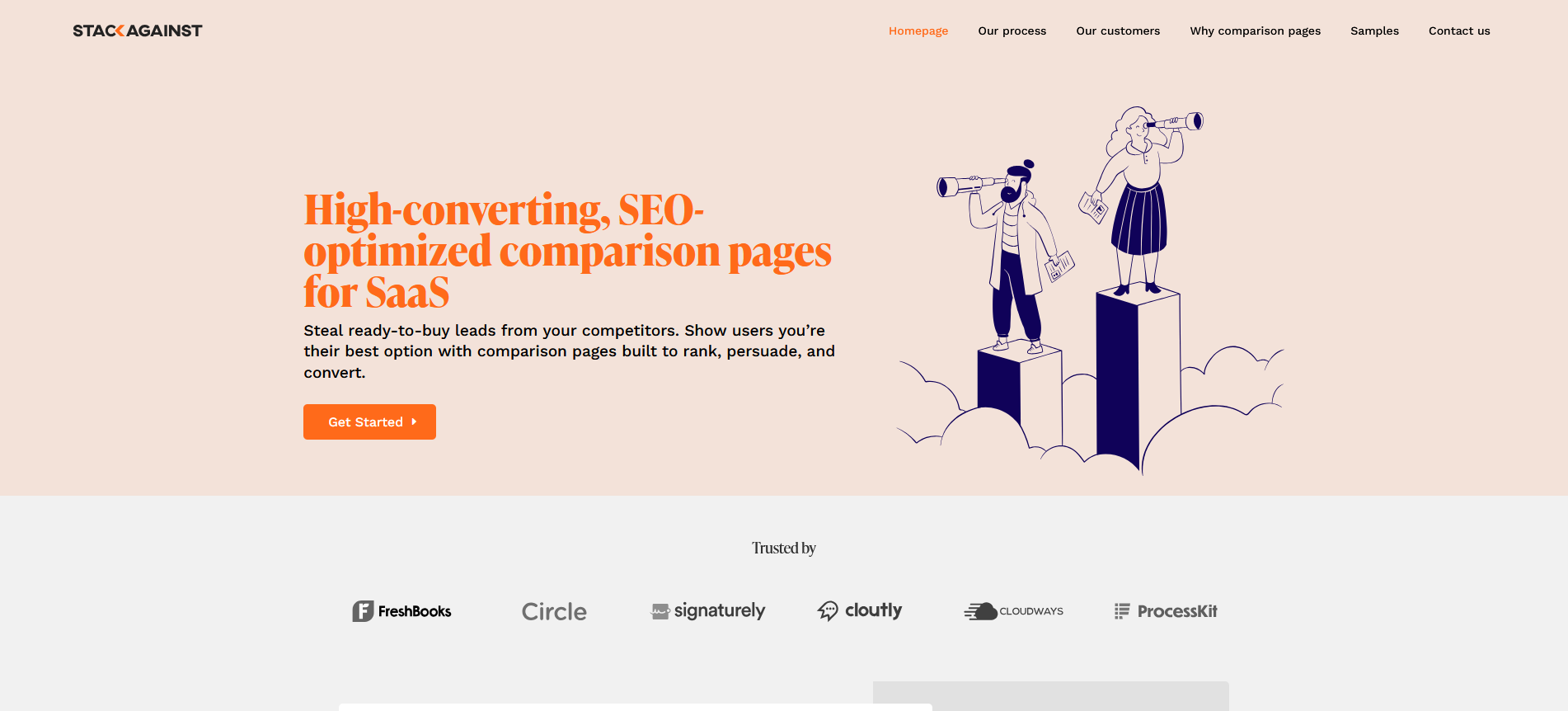 I'm a copywriter, turned SaaS copywriter first and then founder of Stack Against which is a productized service that specializes in comparison pages and competitive enablement. And after working with different SaaS clients, I realized that there was this thing that they all wanted to do, which is comparison pages. And I did a few for different projects, and after doing a couple, I came up with this process to tackle comparison pages from A to Z. Like, here's how to do the research, here's how to do the copywriting, here's how to do the design. Even if I'm not a designer, I wanted to deliver that as well. And at some point I just went, "I should just come up with a specific offer around this idea." And I've been playing with the idea of even narrowing down more than just being a SaaS copywriter, and that's how Stack Against came to be. We started growing, we started doing more of those projects, and eventually we expanded our offer into sales enablement assets and competitive intelligence stuff, which is what we're doing right now, but still not neglecting the comparison pages.